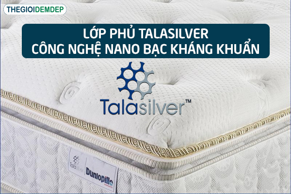 Công nghệ Talasilver: được cho là bước ngoặt của nền sản xuất chăn ga gối đệm, giúp ngăn ngừa hoàn toàn các vi khuẩn gây ẩm mốc trên đệm. Bảo vệ môi trường ngủ luôn trong sạch, phù hợp với những gia đình có con nhỏ.