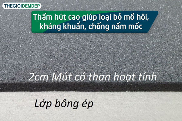 Khả năng khử độc, kháng khuẩn và khử mùi là những ưu điểm lớn nhất của dòng đệm này. Sử dụng công nghệ hiện đại cùng lớp bột than hoạt tính giúp phát huy được hoàn toàn tác dụng của than hoạt tính giúp loại bỏ những khí độc. Bên cạnh đó, lớp bông ép có độ thấm hút cao giúp loại bỏ được mồ hôi và kháng khuẩn, chống nấm mốc, bụi bẩn.