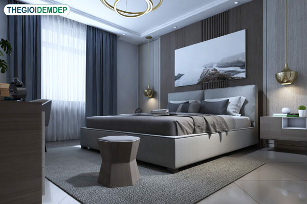 Mẫu phòng ngủ mang phong cách hiện đại chinh phục người dùng bằng sự tối giản có chủ đích nhưng vẫn đảm bảo sự sang trọng, tiện nghi. Nội thất phòng ngủ chính là điểm nhấn ấn tượng giúp căn phòng ghi điểm tuyệt đối trong mắt người dùng.