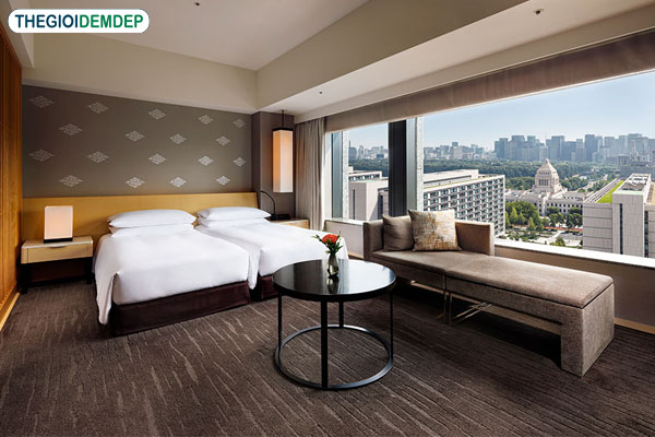– Với phòng đôi có diện tích 32m2, thường sử dụng 2 giường đơn hoặc một giường đôi cơ bản (Double bed). Đây là chiếc giường dành cho hai người nằm thường có kích thước 1m5x2m. Chúng được áp dụng cho các phòng: Double room, Triple room và Family room.